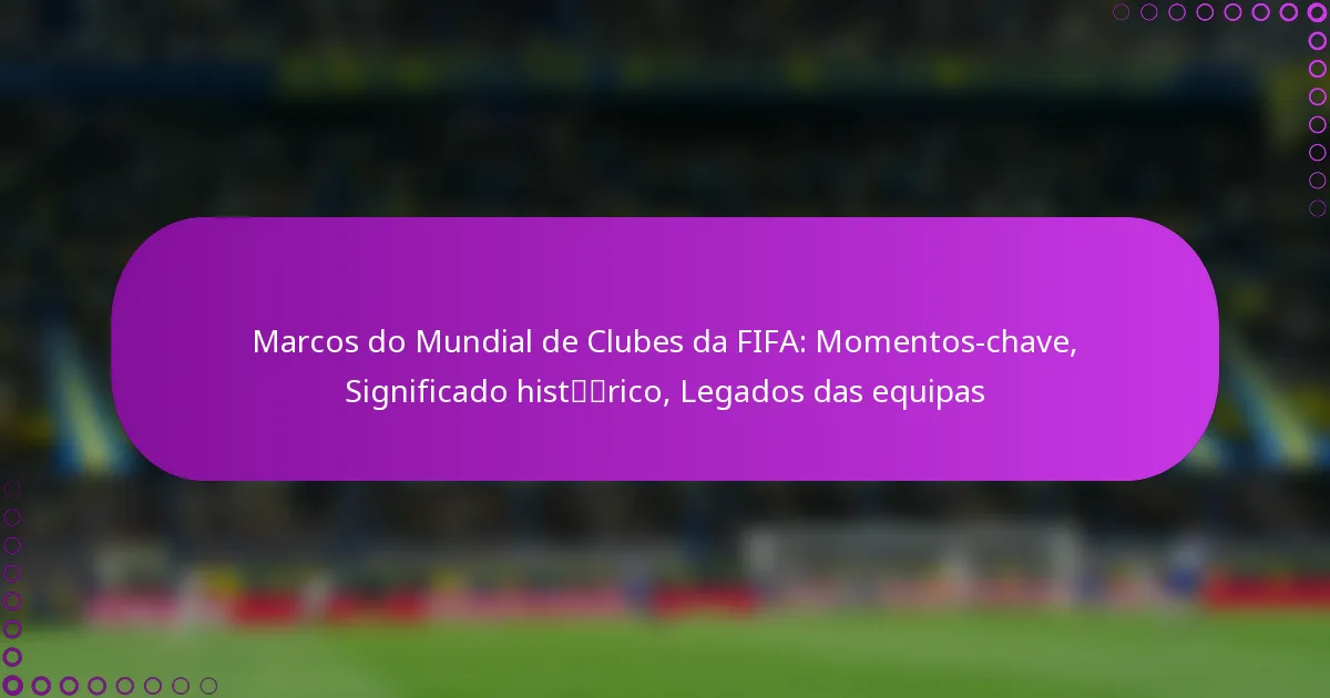 A Taça do Mundo de Clubes da FIFA tornou-se um evento fundamental no futebol internacional, apresentando os melhores clubes de todo o mundo e marcando momentos chave que definem o legado do torneio. Com a sua rica história de jogos icónicos e surpresas, a competição não só eleva as reputações das equipas, mas também influencia o panorama mais amplo da governança do futebol e do jogo internacional.