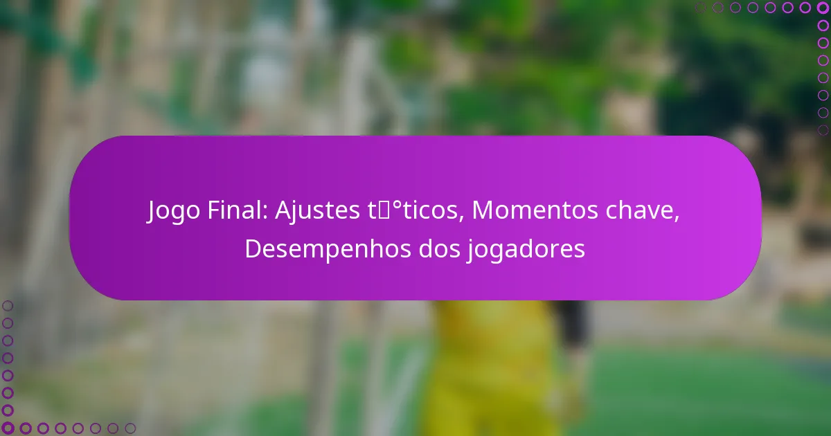 Jogo Final: Ajustes táticos, Momentos chave, Desempenhos dos jogadores
