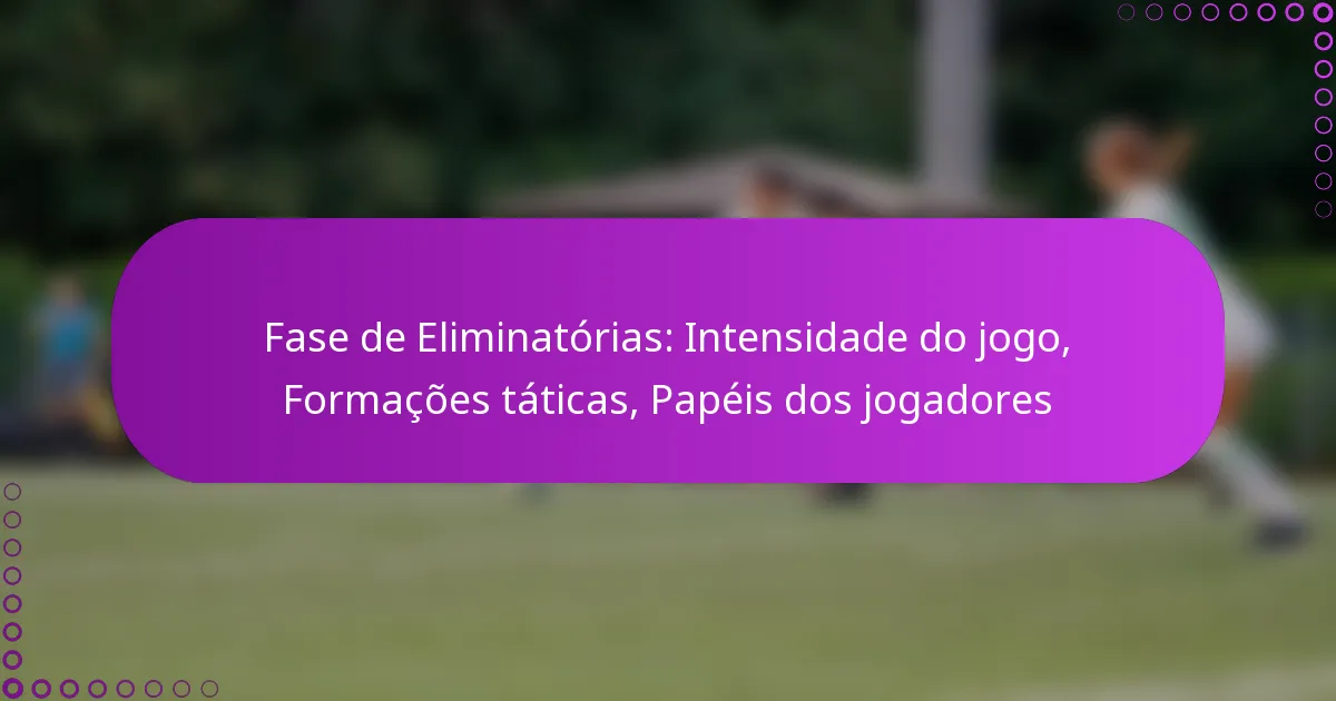 Fase de Eliminatórias: Intensidade do jogo, Formações táticas, Papéis dos jogadores