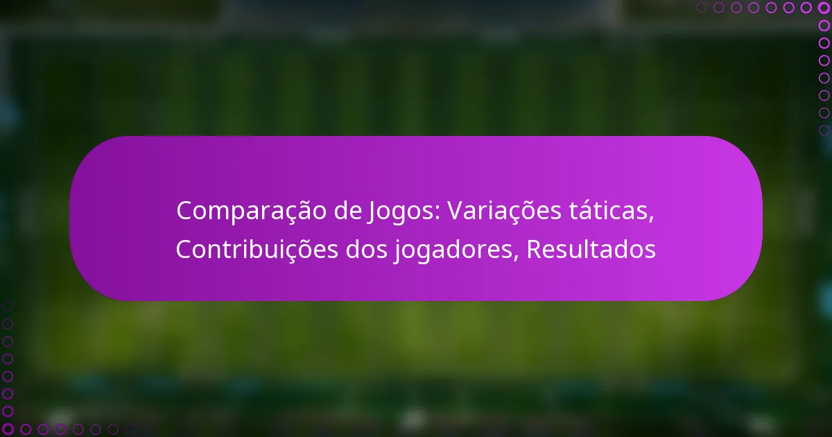 Comparação de Jogos: Variações táticas, Contribuições dos jogadores, Resultados