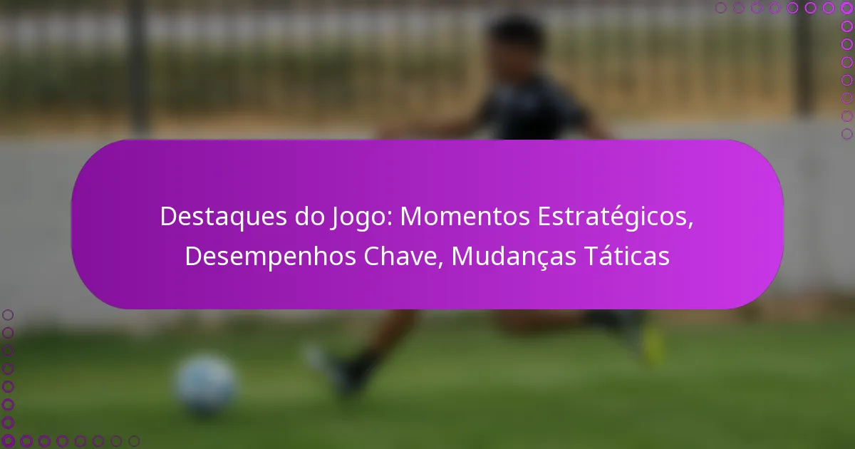 Destaques do Jogo: Momentos Estratégicos, Desempenhos Chave, Mudanças Táticas