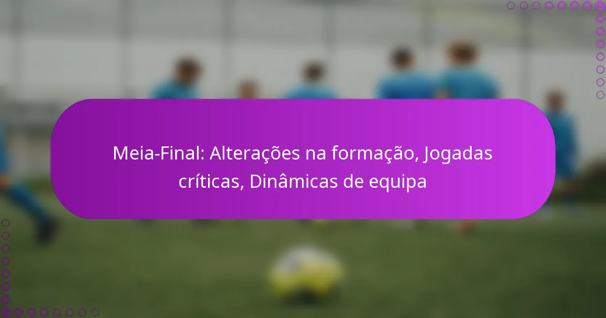 O jogo da meia-final apresentou uma série de alterações estratégicas nas formações que influenciaram dramaticamente as abordagens e a dinâmica geral das equipas. Jogadas críticas, incluindo golos importantes e manobras defensivas, mudaram o ímpeto e, em última análise, determinaram o resultado do jogo. Além disso, a eficácia da dinâmica da equipa, caracterizada pela comunicação e liderança, desempenhou um papel vital na forma como os jogadores executaram as suas estratégias sob pressão.
